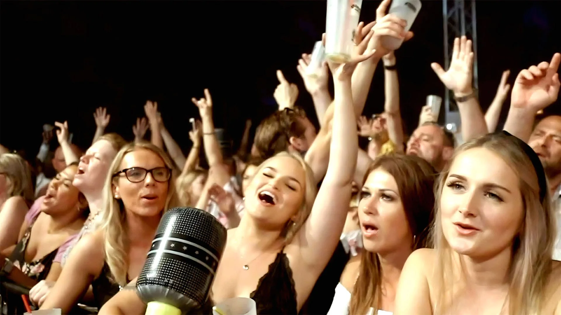 MASSAOKE is the original, crowd-powered live band sing-along experience. An incredible live band play the greatest hairbrush anthems of all time, along with giant screens of video lyrics – so everyone can join in together.
